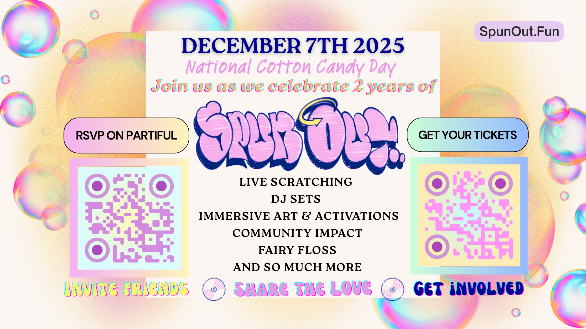 Here is what the Spun Out Experience is all about!An immersive and interactive experience, carefully curated to fully engage one's senses. Come connect, meet the Floss Boss, sip a cup of tea, taste Fairy FOS, put on a record, and feel all that Spun Out has to offer.